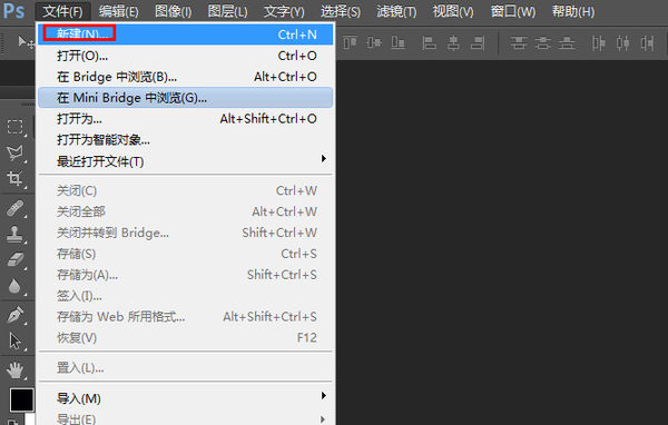 2、打开PS后的界面是这样的