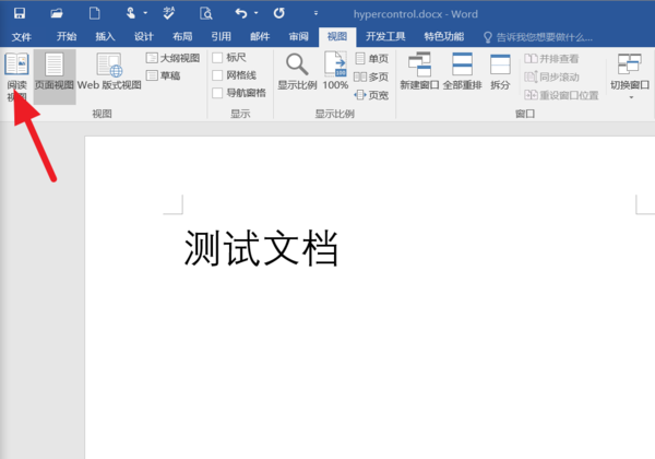 8、返回到Word文档,即可使用“切换全屏视图”功能按钮。