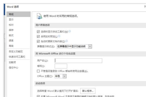 4、点击“选项”命令选项后,这个时候会打开“Word选项”对话窗口。如图所示;
