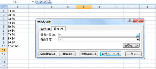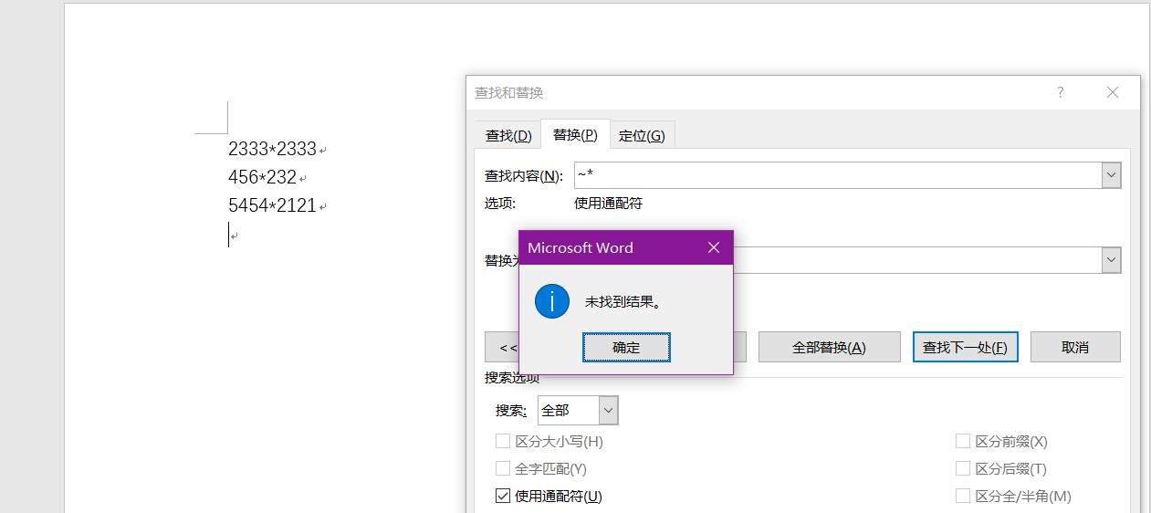 3.在查找的*前输入一个~,就可以将*替换成乘号了: