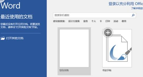 1、在计算机桌面上的Word2016文档程序图标双击鼠标左键,将其打开运行。并点击“空白文档”选项,新建一个空白Word文档。如图所示;