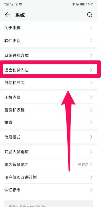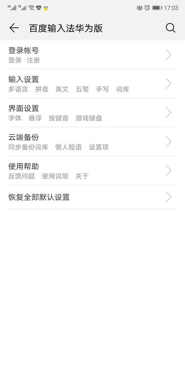 1、设置——语言和输入法——键盘和输入法——默认——华为输入法。