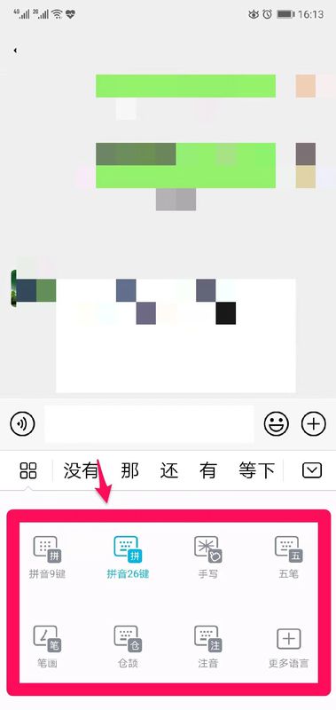 3、之后进入到微信或者QQ的聊天界面,在输入法界面根据自己的习惯选择适合自己的输入法就可以操作了