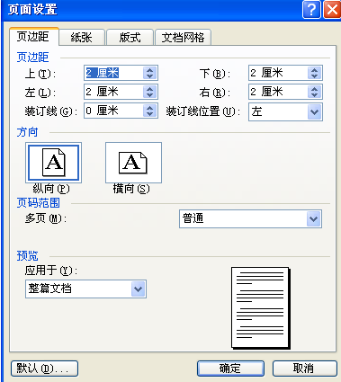 可以在页面设置对话框中设置,其具体的操作步骤: