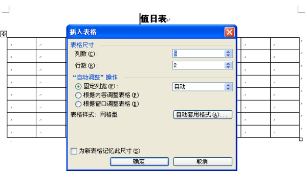 5、在打开的表格对话框中输入表格的行数和列数。根据实际需要进行设置,设置好后点击确定按钮;