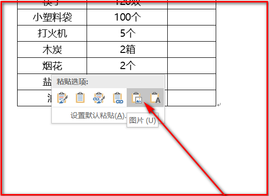 4、打开Word,使用键盘快捷键“Ctrl+V”粘贴表格,随后点击自动弹出的“粘贴选项”中的“图片”按钮。