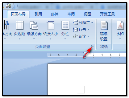 3、然后在下方的选项内点击“页面设置”栏目右下角的下拉扩展按钮。