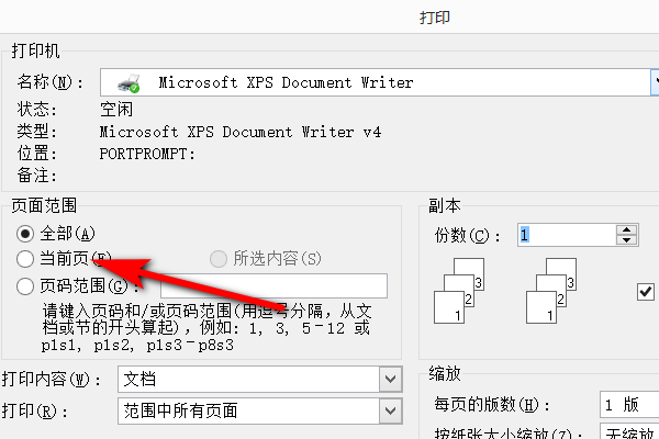 打印默认是选择全部,打印单页就选择单页就好了,或者选择第三个自己输入页码进行打印,祝你成功!