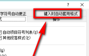 5、这时就会弹出自动更正页面,在该页面中的最上方可以看到很多的选项卡,点击【键入时自动套用格式】选项