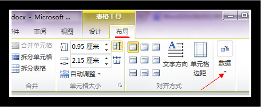 3、在数据的黑箭头下拉中隐藏了这个公式功能,如果最大化word就可以直接看到。在word2003中直接点击菜单中的表格,之后在表格中点击公式即可。