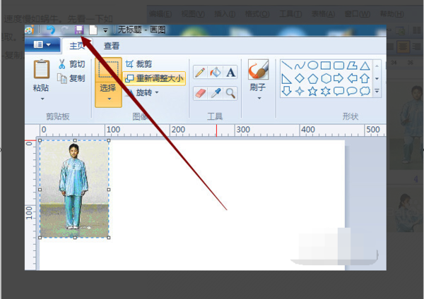 2、打开画图工具,单击粘贴然后把画布调整好和图片一般大小,单击保存。