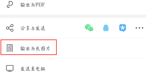4、在文件下,找到“输出为长图片”这个选项,点击它,这样就可以将WORD文档图片保存为JPG图片了。