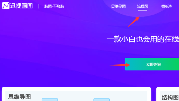 打开画图工具,点击页面上方【流程图】在跳转的页面点击【立即体验】进入在线绘制界面;