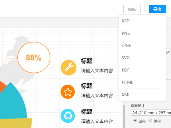 这时一张完整的流程图就在线制作完成了,点击右上角【导出】在弹出的菜单栏中支持多种格式的导出,根据自己的需要选择格式的导出即可;