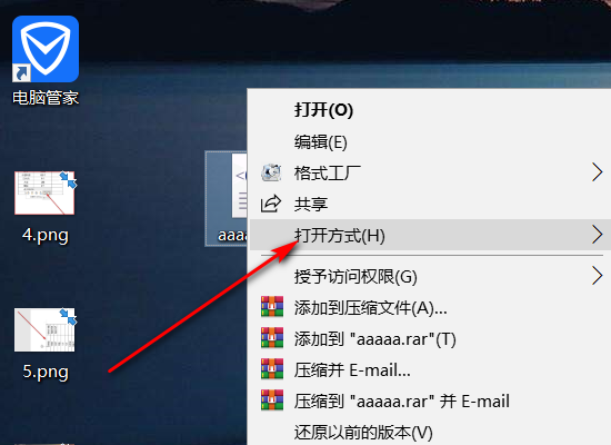 1、在电脑桌面或文件夹内找到xml文件,并右键点击,选择“打开方式”按钮。