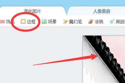 2、然后选择一张需要添加边框的图片,并点击页面上方工具栏中的“边框”选项。
