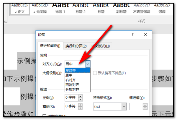 3、在段落对话框中,对齐方式选择”左对齐“,确定即可。