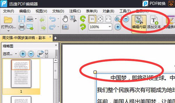 b.将PDF文件进行到如之后我们就可以看见PDF编辑器中有“编辑文档”这一栏,然后进行点击!然后我们在文档中也进行点击,你会发现有一个蓝色的小框,然后我们就可以对PDF文件进行编辑了!