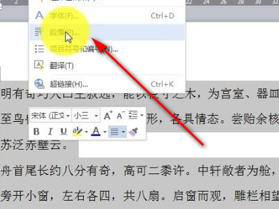 2、在文档里面选中需要设置的段落,右键单击在菜单栏里面选中段落。