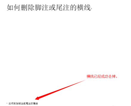 5、下图显示删除文本的脚注标签后文档下方的显示效果,水平线也被删除。