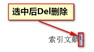 4、用鼠标选中或者移动光标选中脚注的标号,点Del删除,横线也就跟着删除了。