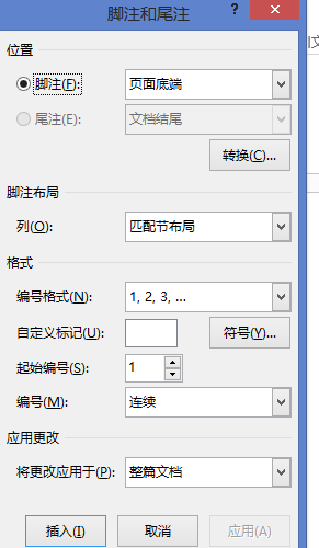 设置尾注或脚注应用于选择本节。选择页面底端或文字下方,后面均可正常编辑正文。
