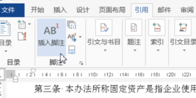 5、Œ将光标定位在下一个要插入脚注的位置;单击“引用”选项卡;Ž单击“脚注”组中的“脚注”按钮。
