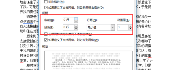 3.设置间距,“段前”、“段后”均选择0行,“行距”选择最小值,设置一个合适的值;