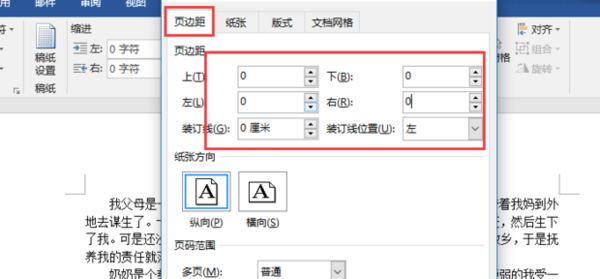 5.在页边距中将上、下、左、右边距尽快能调整小。
