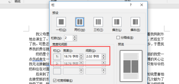 2.一般选择二栏,可以设置栏宽和间距,缩小字体,尽可能的使两页纸缩到一页纸上。