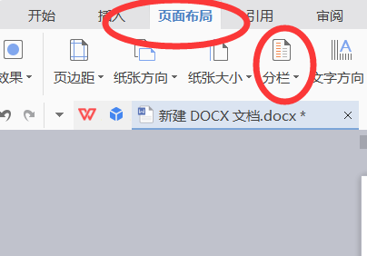 2、点击页面上方工具栏中的“页面布局”选项,在其中点击“分栏”按钮。