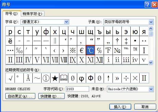 word摄氏度符号输入方法三: