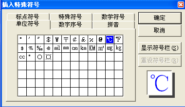 ②在“单位符号”中即可找到你想要的“摄氏度”符号了。