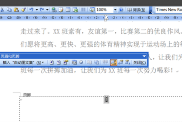 2、在最后一页的页脚处双击鼠标,进入页脚编辑状态;