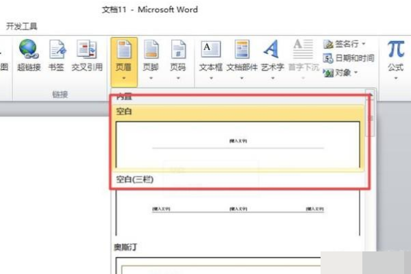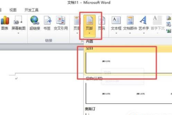 5、然后我们再回到插入工具栏中,点击页脚的下拉箭头,弹出的界面,我们依旧点击第一个;