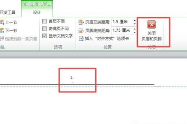 4、之后我们输入页眉为1,然后点击关闭页眉和页脚;