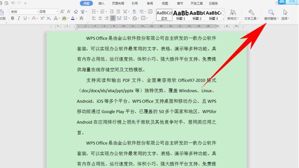 2、接着点击开始,然后再点击右上角的替换,在这里就可以对文字进行修改,直接点击即可。