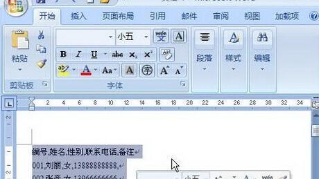 在Word2007在实际编辑应用中常常会有一些有规律的内容,如果通过表格方式表达会更加直观,这时就有必要把文本内容转换成表格,具体方法如下: