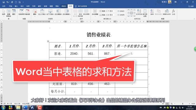 一、word文档中的表格求和,格式方法相对于Excel单一。