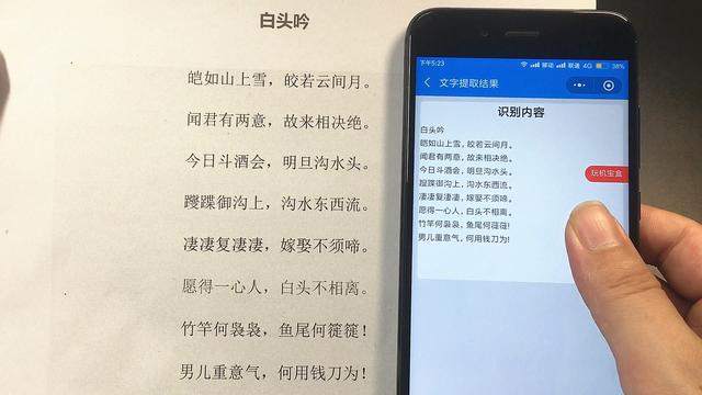 4、把需要转换的纸质文档用手机拍下来后,就会出现可以编辑的文字,复制文字。最后使用手机微信把文字传到电脑上,复制粘贴到电脑中的word文档上进行编辑。