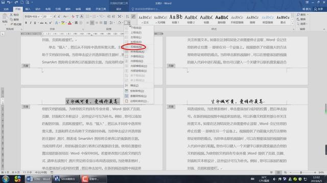 也可以在选中页眉的状态下通过表格边框的属性删除页眉的下划线。