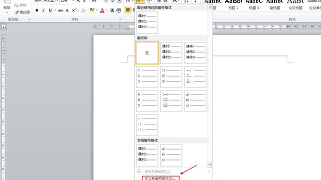 4. 怎样在Word2010中定义新编号格式