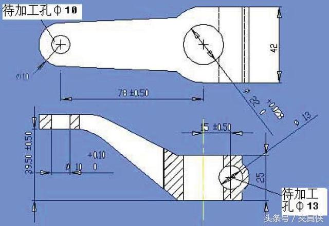 1.1.2. 熟悉工件零件图和工序图 零件图给出了工件的尺寸、形状和位置、表面粗糙度等精度的总体要求,工序图则给出了夹具所在工序的零件的工序基准、工序尺寸、已加工表面、待加工表面、以及本工序的定位、夹紧原理方案,这是夹具设计的直接依据。