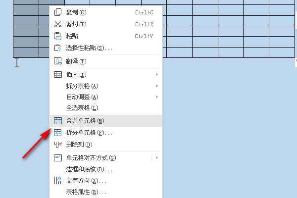 5、最后就可以回到文档里面,选中需要合并的单元格,单击右键选择合并单元格即可。