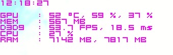 效果如图,我设置的是显卡温度,GPU占用率,风扇转速,显存占用,FPS,CPU占用率,内存占用。