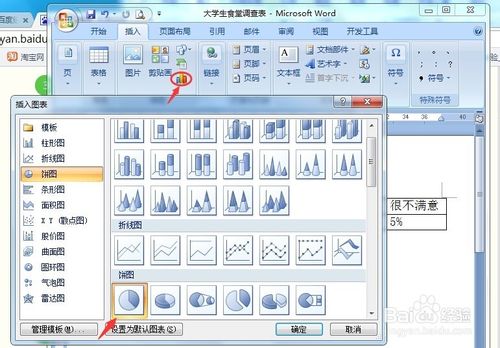 步骤二:在弹出的“插入图表”对话框中,选择“饼图”,并选择饼图类型,单击“确定”按钮。
