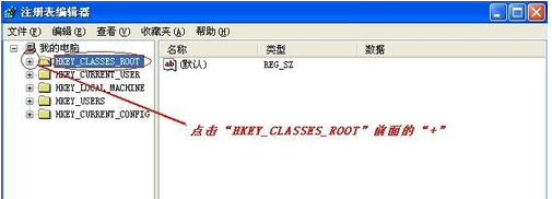 2、随后会弹出“注册表管理器”窗口,在窗口左侧找到“HKEY_CLASSES_ROOT”并点击它前面的“+”。