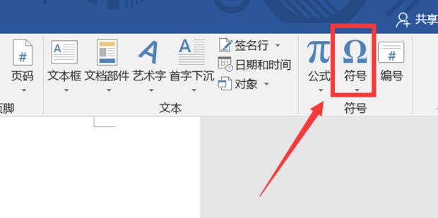 1、在电脑上打开目标word文档,将光标放置在目标位置处,然后点击“插入”菜单选项页面中的“符号”选项。