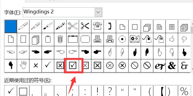 6.在弹出的符号栏里,字体一定要改成【Windings2】;
