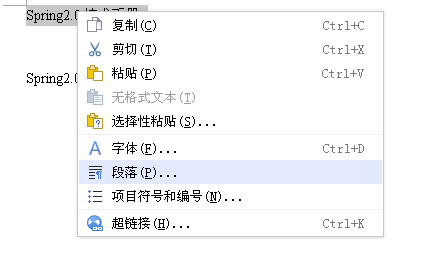 请楼主分别选中宽度不同的两行文字,然后单击右键,选择段落,如图所示